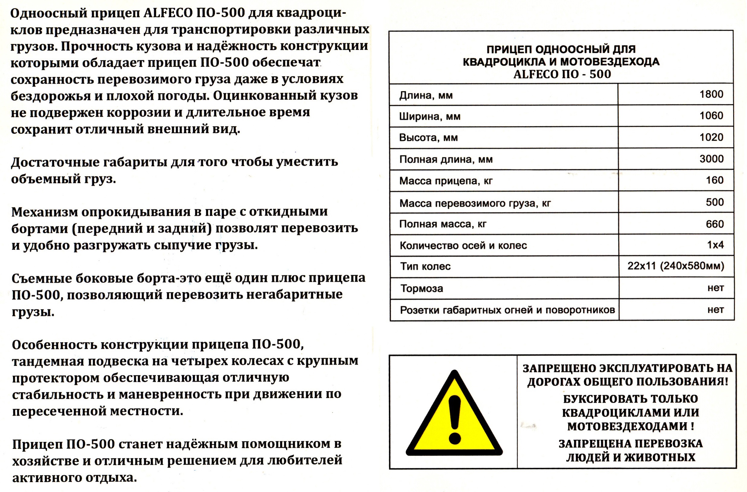 Прицеп одноосный четырёхколёсный, ALFeco, арт. ALF500tr