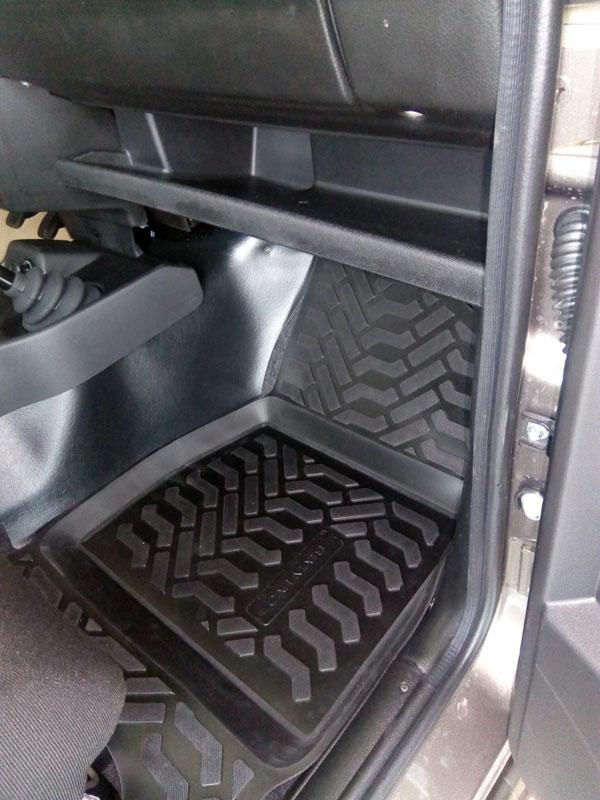 Ковры салонные модельные высокий борт 3D с подпятником 64046 для автомобиля Lada 2121/31 Нива производства Элерон (Aileron) изготавливаются из уникального современного ТЭП материала, с содержанием каучука 55%, посторонние запахи в салоне после установки отсутствуют. Форма ковров идеально совпадает с полом салона благодаря технологии 3D лазерного сканирования. Ковры имеют оригинальный рисунок "Протектор". Площадка для отдыха левой ноги выполнена единым целым с основным ковром. Подпятник из износоустойчивого материала обеспечит продолжительный срок службы и безопасность при ежедневном использовании в любое время года, а в зимний период убережет от образования луж под ногами. Высота бортика 32 мм предотвратит попадание влаги и мусора под коврик.