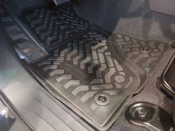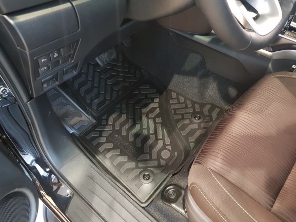 Ковры салонные модельные высокий борт арт. 61982 для автомобиля Toyota Fortuner (2015-) производства Элерон (Aileron) изготавливаются из уникального современного экологически чистого материала, не имеют неприятного запаха. Форма ковров идеально повторяют конфигурацию пола салона. Коврики имеют оригинальный рисунок. Водительский ковер имеет площадку для отдыха левой ноги. Задние ковры могут быть оснащены перемычкой. Высота бортика 32 мм предотвратит попадание влаги и мусора.