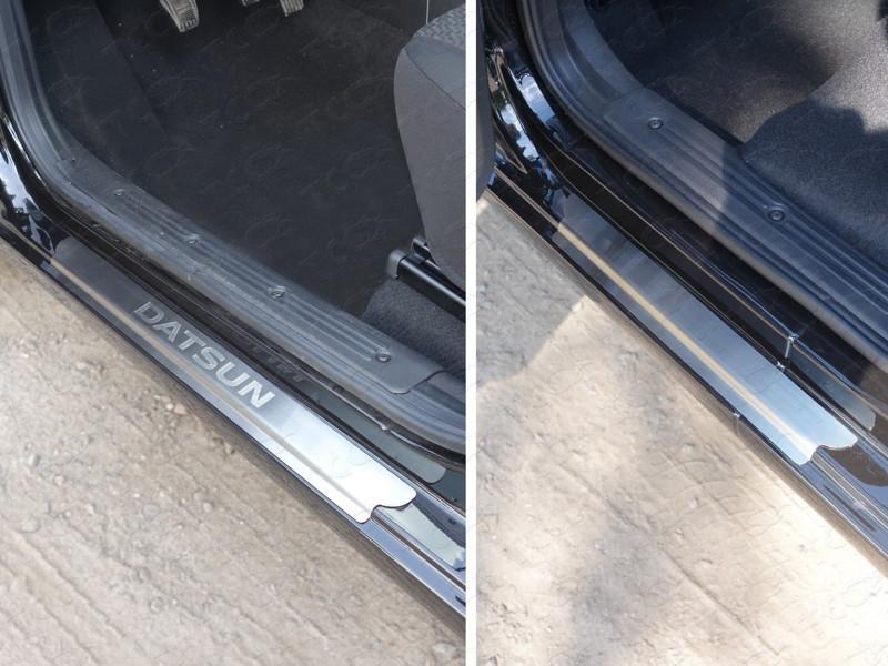 Накладки на пороги (лист шлифованный надпись Datsun) для автомобиля Datsun mi-DO 2015- представляет собой элемент тюнинга и защиты автомобиля и производится специально для данной модели. Данное изделие изготавливается из нержавеющей стали и полируется вручную, что обеспечивает сохраниение отличного внешнего вида в течение длительного времени в наших непростых климатических условиях. Срок поставки продукции производства компании TCC Тюнинг составляет 1-5 дней. Установить деталь Накладки на пороги (лист шлифованный надпись Datsun) для автомобиля Datsun mi-DO 2015- можно на нашем сервисе, предварительно записавшись по телефону.