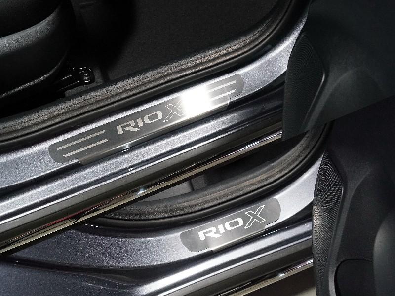 Накладки на пороги (лист шлифованный надпись RIO X) 4шт арт.KIARIOX20-08 из нержавеющей стали для Kia Rio X 2020. Помимо декоративной функции, накладки также помогут защитить штатный порог или бампер. Алюминиевые накладки просты в установке и не требуют специального ухода. Срок поставки накладок из алюминия производства TCC Тюнинг составляет 1-3 дня с момента заказа, в зависимости от наличия на складе, необходимо уточнять у менеджера.