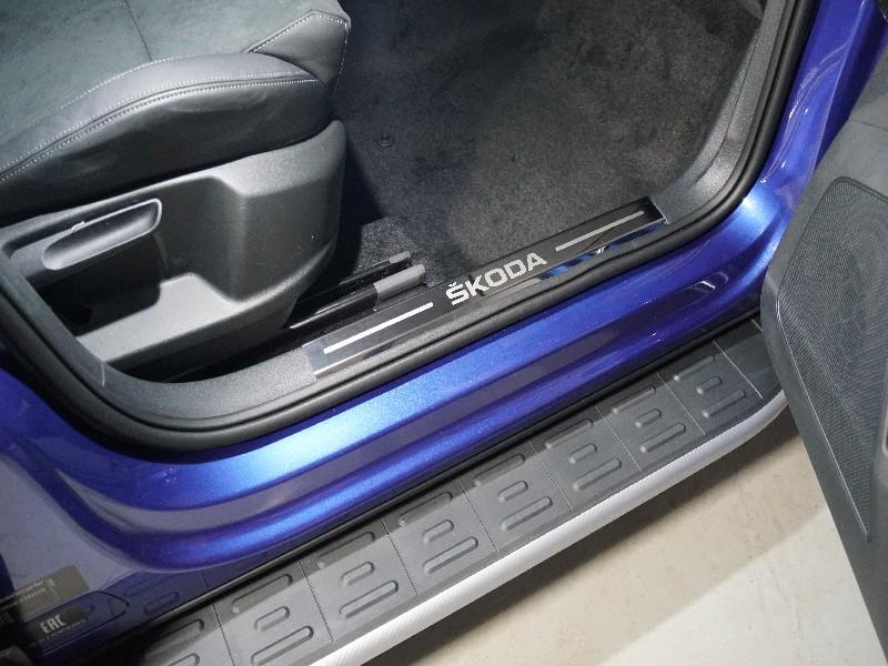 Накладки на пластиковые пороги (лист зеркальный надпись Skoda) 4шт арт.SKOKAR20-08 из нержавеющей стали для Skoda Karoq 2020-. Помимо декоративной функции, накладки также помогут защитить штатный порог или бампер. Алюминиевые накладки просты в установке и не требуют специального ухода. Срок поставки накладок из алюминия производства TCC Тюнинг составляет 1-3 дня с момента заказа, в зависимости от наличия на складе, необходимо уточнять у менеджера.