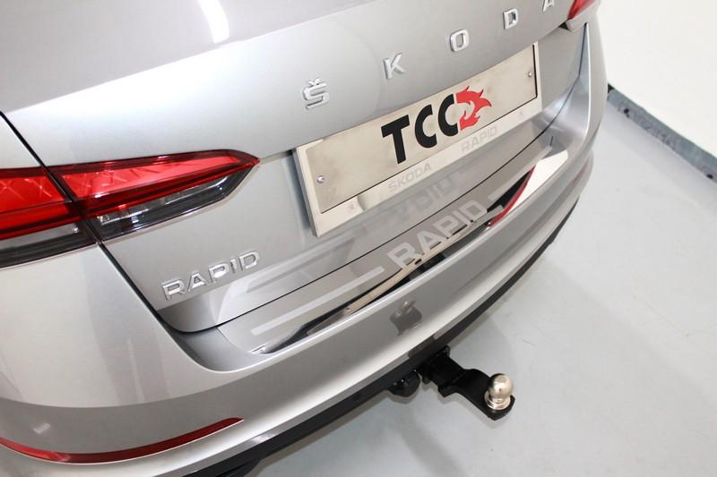 Накладка на задний бампер (лист зеркальный надпись Rapid) арт.SKORAP20-16 из нержавеющей стали для Skoda Rapid 2020-. Помимо декоративной функции, накладки также помогут защитить штатный порог или бампер. Алюминиевые накладки просты в установке и не требуют специального ухода. Срок поставки накладок из алюминия производства TCC Тюнинг составляет 1-3 дня с момента заказа, в зависимости от наличия на складе, необходимо уточнять у менеджера.