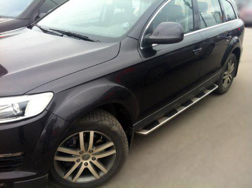 Пороги Side Step на Audi Q7 представляют собой хорошую копию оригинальных порогов Audi. Пороги рассчитаны на полную нагрузку, на них можно свободно вставать как со стороны водителя, так и со стороны пассажира.