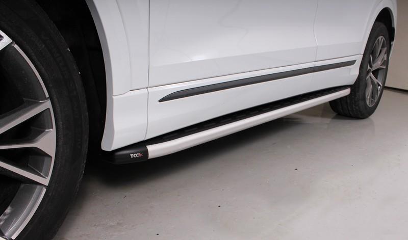 Пороги алюминиевые с пластиковой накладкой 2020 мм производства TCC Тюнинг арт. AUDIQ819-12AL для автомобиля Audi Q8 2019- - представляет собой элемент тюнинга и защиты автомобиля и производится специально для данной модели. Данное изделие изготавливается из алюминия и полируется вручную, что обеспечивает сохраниение отличного внешнего вида в течение длительного времени в наших непростых климатических условиях. Срок поставки составляет 1-5 дней. Установить деталь Пороги алюминиевые с пластиковой накладкой 2020 мм арт.AUDIQ819-12AL для автомобиля Audi Q8 2019- можно на нашем сервисе, предварительно записавшись по телефону.