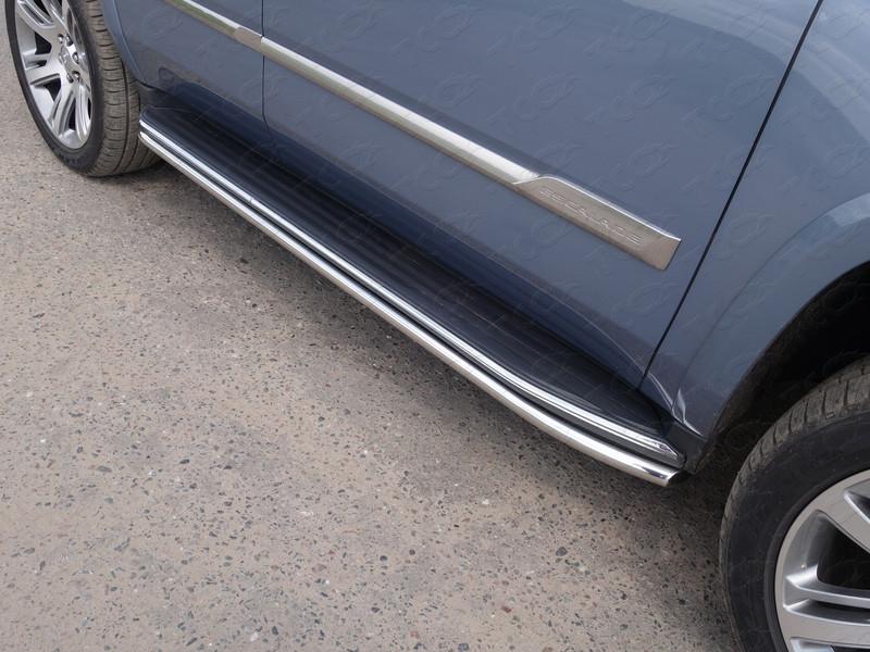 Защита порогов 42,4 мм для автомобиля Cadillac Escalade 2015 представляет собой элемент тюнинга и защиты автомобиля и производится специально для данной модели. Данное изделие изготавливается из нержавеющей стали и полируется вручную, что обеспечивает сохранение отличного внешнего вида в течение длительного времени в наших непростых климатических условиях. Срок поставки продукции производства компании TCC Тюнинг составляет 1-5 дней. Установить Защита порогов 42,4 мм для автомобиля Cadillac Escalade 2015 можно на нашем сервисе, предварительно записавшись по телефону.