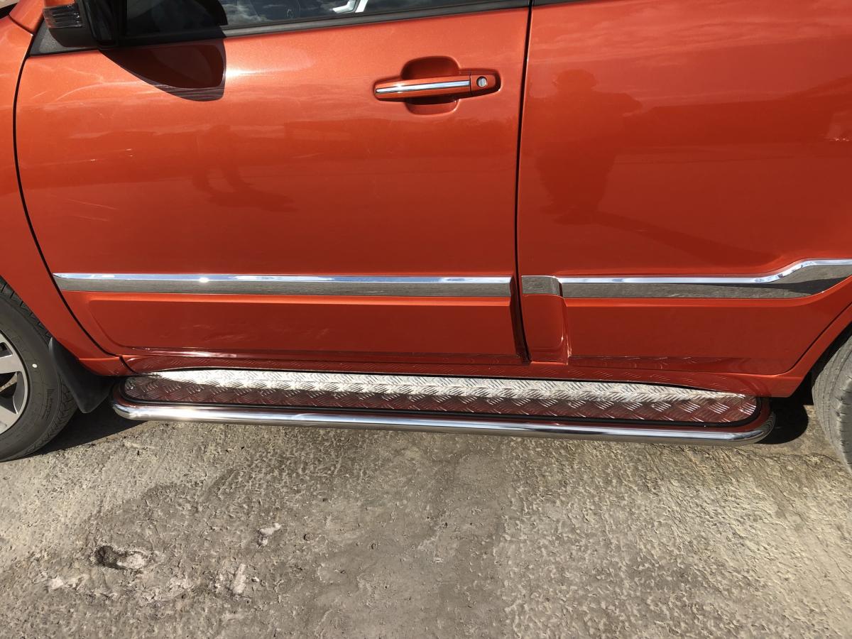 Пороги с накладным листом d42 арт. CHTG.17.41 для автомобиля CHERY Tiggo 3 - представляет собой элемент тюнинга и защиты автомобиля и производится специально для данной модели. Данное изделие изготавливается из нержавеющей стали и полируется вручную, что обеспечивает сохранение отличного внешнего вида в течение длительного времени в наших непростых климатических условиях. Срок поставки составляет 1-5 дней. Установить деталь Пороги с накладным листом d42 арт.CHTG.17.41 для автомобиля CHERY Tiggo 3 можно на нашем сервисе, предварительно записавшись по телефону.