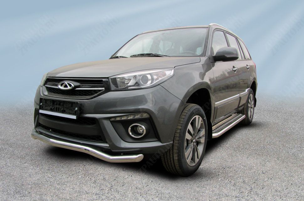 Защита переднего бампера d57 волна Chery Tiggo 3 (2014-2020) , Slitkoff, арт. CT3-001