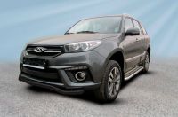 Защита порогов d76 с проступями серебристая Chery Tiggo 3 (2014-2020) , Slitkoff, арт. CT3-005S