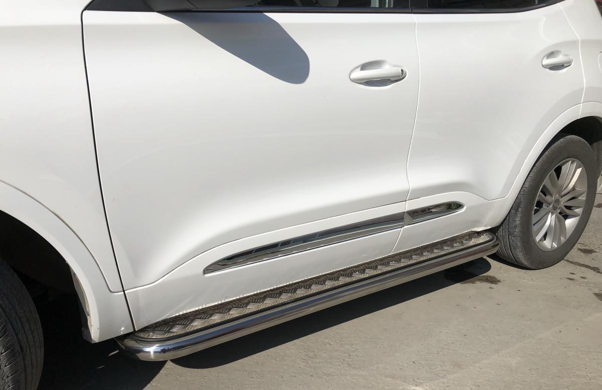 Пороги с накладным листом d 53 арт. CHTG.19.41 для автомобиля CHERY Tiggo 4 2019 - представляет собой элемент тюнинга и защиты автомобиля и производится специально для данной модели. Данное изделие изготавливается из нержавеющей стали и полируется вручную, что обеспечивает сохранение отличного внешнего вида в течение длительного времени в наших непростых климатических условиях. Срок поставки составляет 1-5 дней. Установить деталь Пороги с накладным листом d53 арт.CHTG.19.41 для автомобиля CHERY Tiggo 4 2019 можно на нашем сервисе, предварительно записавшись по телефону.