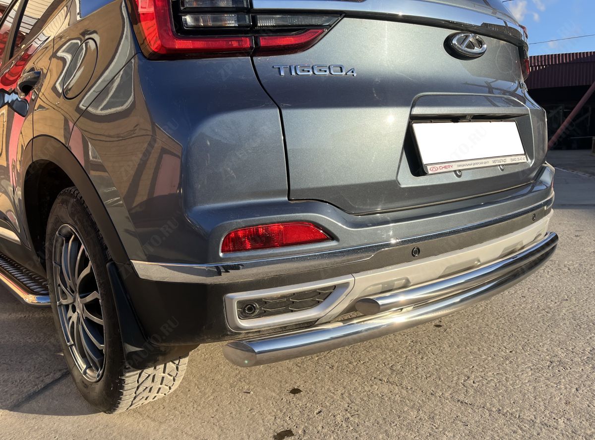 Защита заднего бампера d 60/42 арт. CHTG-R.19.16 для автомобиля Chery Tiggo 4 2019 Рестайлинг - представляет собой элемент тюнинга и защиты автомобиля и производится специально для данной модели. Данное изделие изготавливается из нержавеющей стали и полируется вручную, что обеспечивает сохранение отличного внешнего вида в течение длительного времени в наших непростых климатических условиях. Срок поставки составляет 1-5 дней. Установить деталь Защита заднего бампера d 60/42 арт. CHTG-R.19.16 для автомобиля Chery Tiggo 4 2019 Рестайлинг можно на нашем сервисе, предварительно записавшись по телефону.