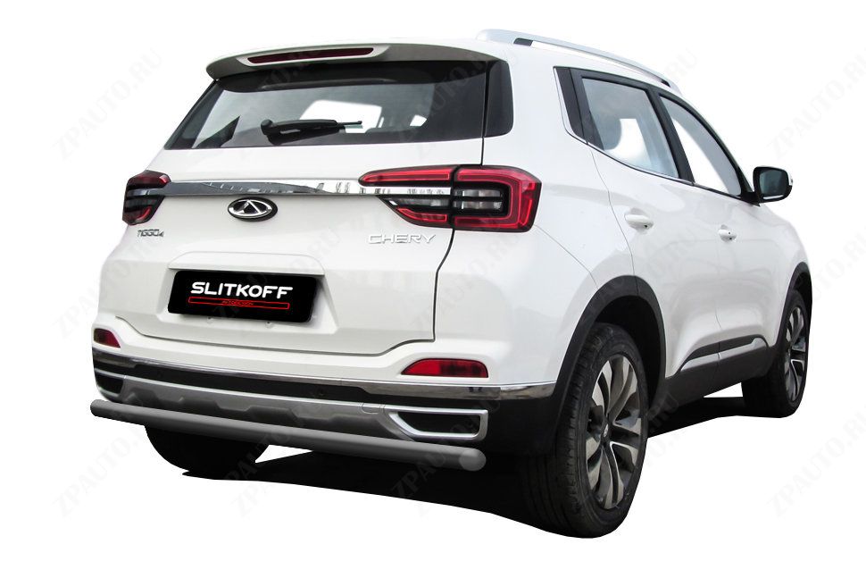 Защита заднего бампера d57 серебристая Chery Tiggo 4 (2018-2023) , Slitkoff, арт. CT4-006S