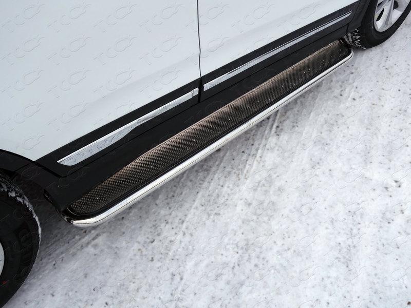 Пороги с площадкой (нерж. лист) 42,4 мм для автомобиля Chery Tiggo 5 2014- представляет собой элемент тюнинга и защиты автомобиля и производится специально для данной модели. Данное изделие изготавливается из нержавеющей стали и полируется вручную, что обеспечивает сохранение отличного внешнего вида в течение длительного времени в наших непростых климатических условиях. Срок поставки продукции производства компании TCC Тюнинг составляет 1-5 дней. Установить Пороги с площадкой (нерж. лист) 42,4 мм для автомобиля Chery Tiggo 5 2014- можно на нашем сервисе, предварительно записавшись по телефону.