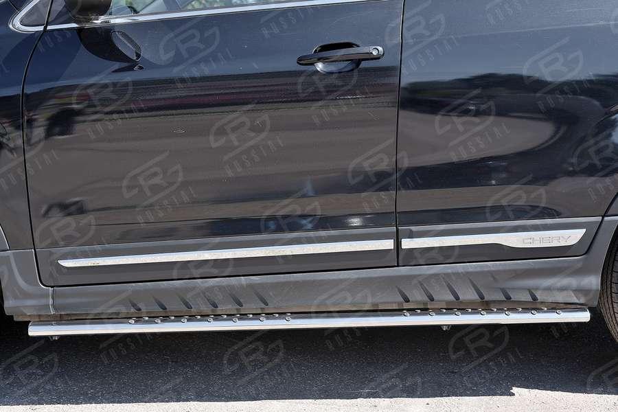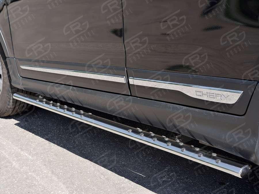 Пороги Slitkoff для Chery Tiggo 5 2014- (Чери Тигго 5 2014-) CT5O-002265 изготовлены из высококачественной нержавеющей стали марки AISI 304, труба имеет диаметр 75x42 мм.