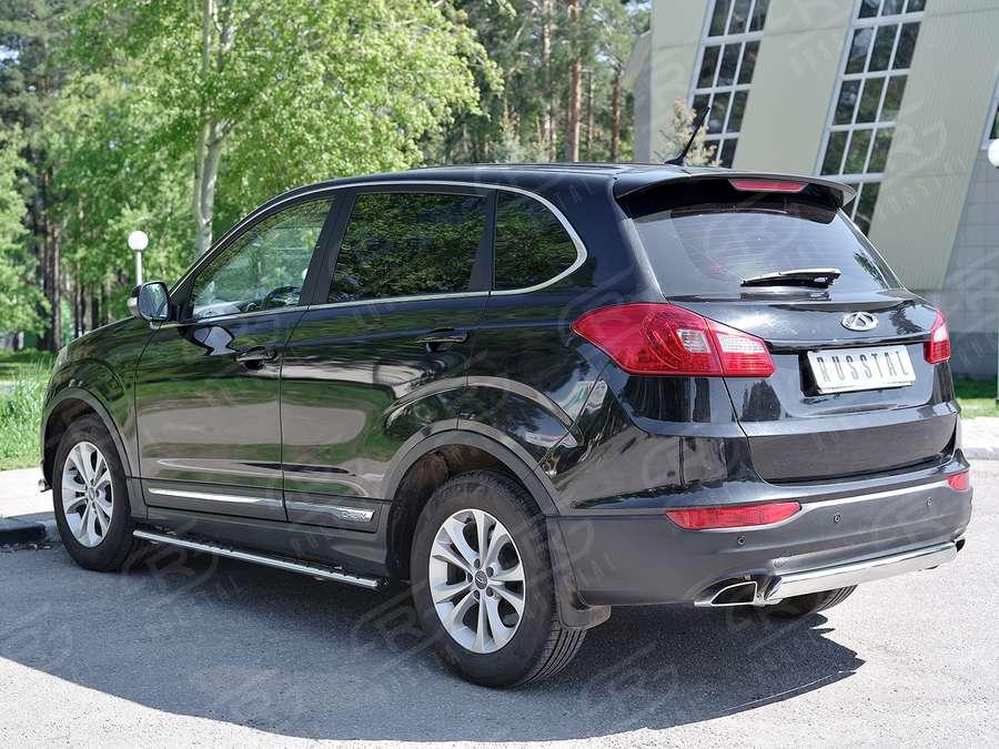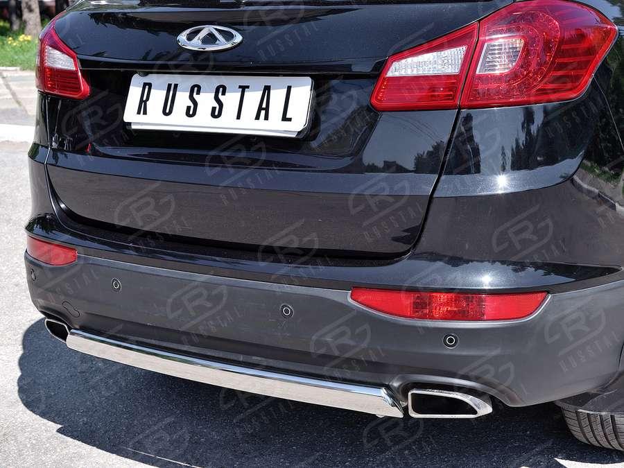Защита заднего бампера Slitkoff для Chery Tiggo 5 2014- (Чери Тигго 5 2014-) CT5Z-002267 изготовлена из высококачественной нержавеющей стали марки AISI 304, труба имеет диаметр 75x42 мм.