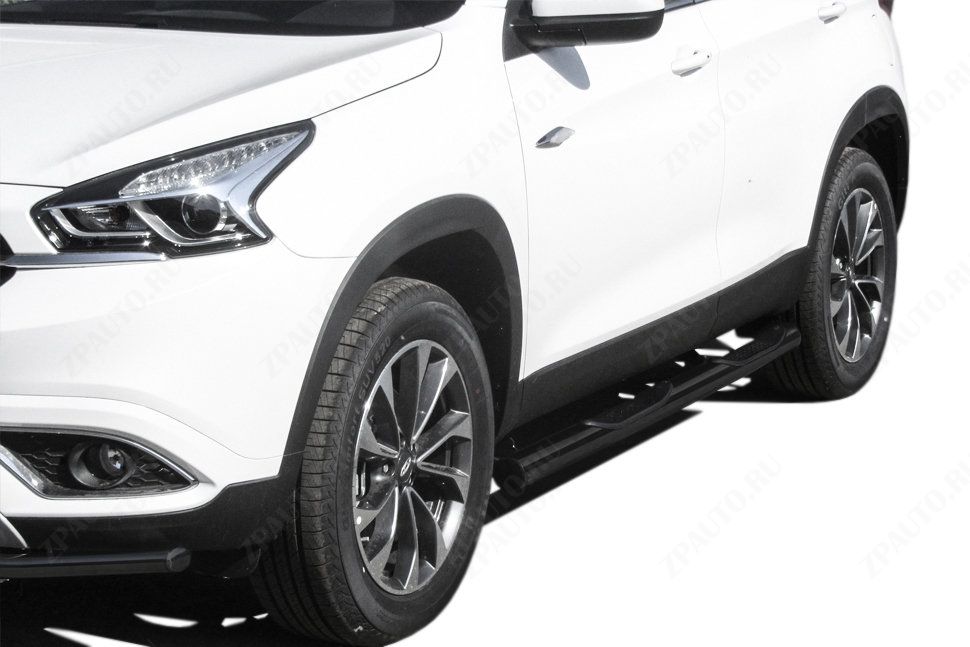 Защита порогов d76 с проступями черная Chery Tiggo 7 (2016-2020) , Slitkoff, арт. CT7-004B