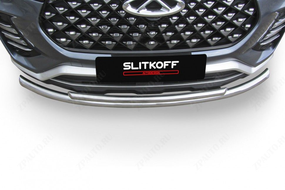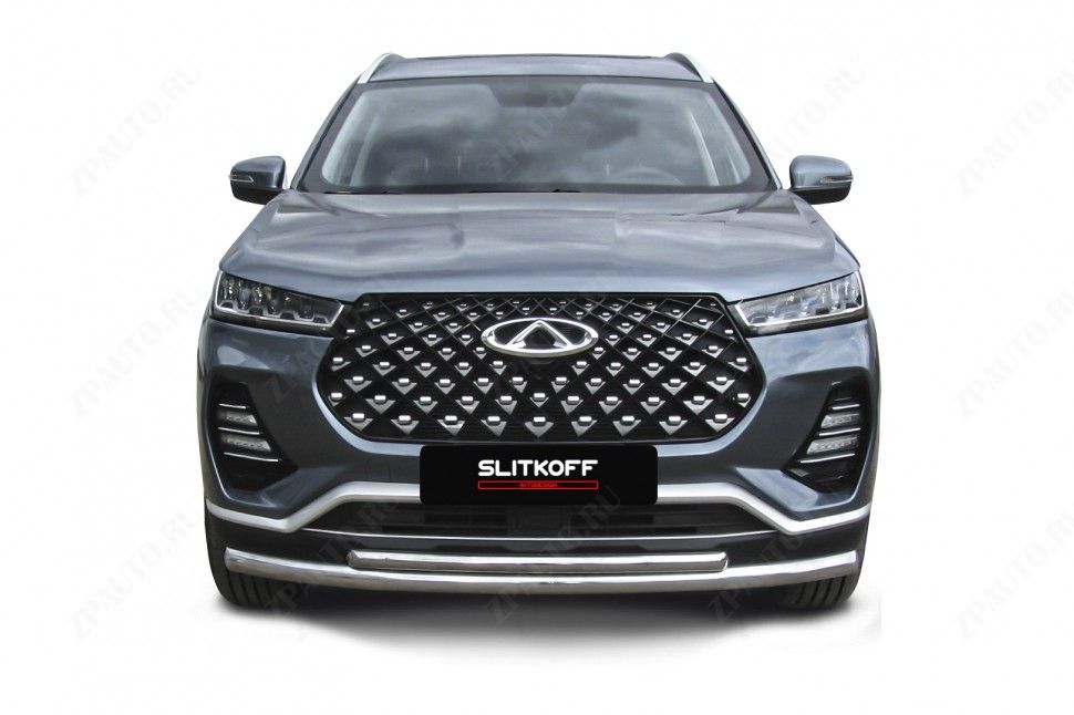 Защита переднего бампера d57+d42 двойная Chery Tiggo 7 Pro (2020-2023) , Slitkoff, арт. CT7PR-002 (дополнительное изображение 1)