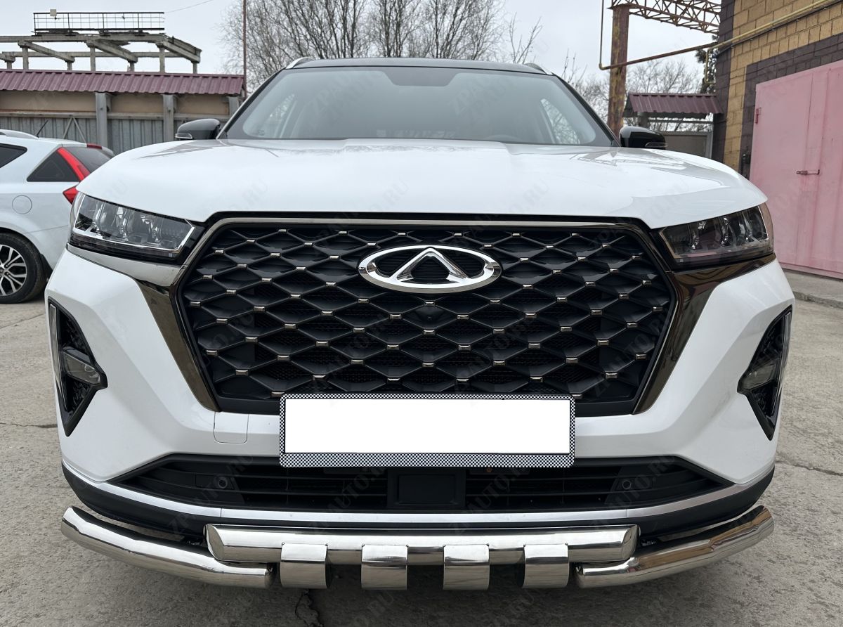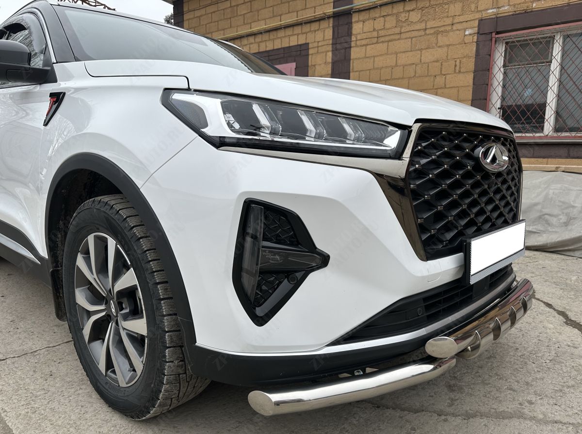 Защита переднего бампера d 60/60 арт. CTGPM.7.22.05 для автомобиля CHERY Tiggo 7 Pro Max 2022 - представляет собой элемент тюнинга и защиты автомобиля и производится специально для данной модели. Данное изделие изготавливается из нержавеющей стали и полируется вручную, что обеспечивает сохранение отличного внешнего вида в течение длительного времени в наших непростых климатических условиях. Срок поставки составляет 1-5 дней. Установить деталь Защита переднего бампера d 60/60 арт. CTGPM.7.22.05 для автомобиля CHERY Tiggo 7 Pro Max 2022 можно на нашем сервисе, предварительно записавшись по телефону.