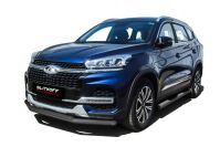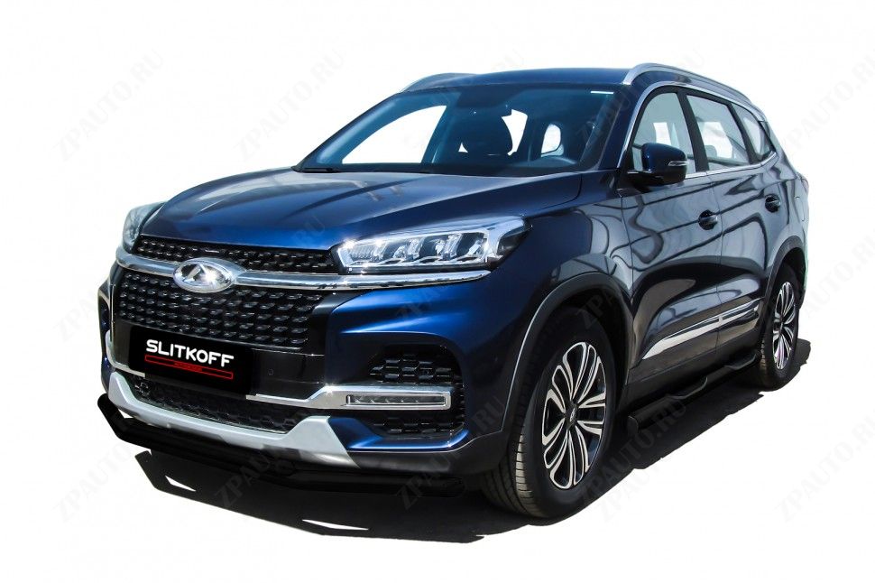 Защита переднего бампера D57+D42 черная Chery Tiggo 8 (2018-2023) , Slitkoff, арт. CT8-001B