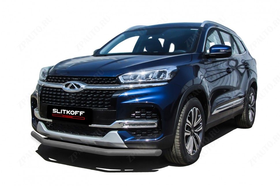 Защита переднего бампера D57 серебристая Chery Tiggo 8 (2018-2023) , Slitkoff, арт. CT8-002S