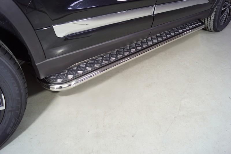 Пороги с площадкой 42,4 мм производства TCC Тюнинг арт. CHERTIG8P21-19 для автомобиля Chery Tiggo 8 pro 2021 - представляет собой элемент тюнинга и защиты автомобиля и производится специально для данной модели. Данное изделие изготавливается из нержавеющей стали и полируется вручную, что обеспечивает сохраниение отличного внешнего вида в течение длительного времени в наших непростых климатических условиях. Срок поставки составляет 1-5 дней. Установить деталь Пороги с площадкой 42,4 мм арт.CHERTIG8P21-19 для автомобиля Chery Tiggo 8 pro 2021 можно на нашем сервисе, предварительно записавшись по телефону.