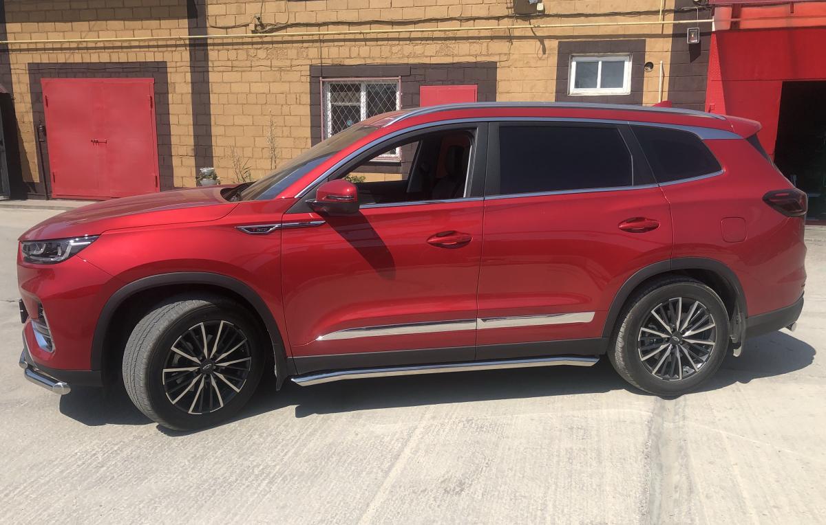 пороги d 60 арт. CTGP.8.21.32 для автомобиля CHERY Tiggo 8 Pro 2021 - представляет собой элемент тюнинга и защиты автомобиля и производится специально для данной модели. Данное изделие изготавливается из нержавеющей стали и полируется вручную, что обеспечивает сохранение отличного внешнего вида в течение длительного времени в наших непростых климатических условиях. Срок поставки составляет 1-5 дней. Установить деталь пороги d 60 арт. CTGP.8.21.32 для автомобиля CHERY Tiggo 8 Pro 2021 можно на нашем сервисе, предварительно записавшись по телефону.