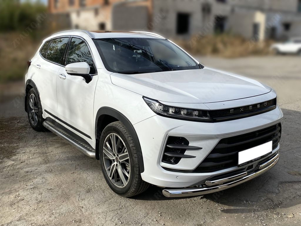 защита переднего бампера d 60+43 арт. CELX_1 для автомобиля Chery EXEED LX 2022-наст.вр. - представляет собой элемент тюнинга и защиты автомобиля и производится специально для данной модели. Данное изделие изготавливается из нержавеющей стали и полируется вручную, что обеспечивает сохранение отличного внешнего вида в течение длительного времени в наших непростых климатических условиях.S7 Установить деталь защита переднего бампера d 60+43 арт. CELX_1 для автомобиля Chery EXEED LX 2022-наст.вр. можно на нашем сервисе, предварительно записавшись по телефону.