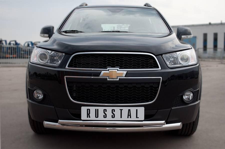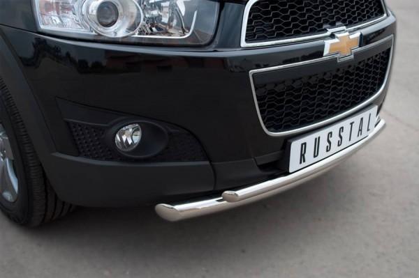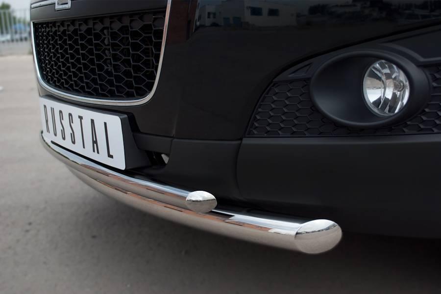Защита переднего бампера для Chevrolet Captiva 2012 изготовлена из высококачественной нержавеющей стали марки AISI 304, труба имеет диаметр 57/42 мм.
