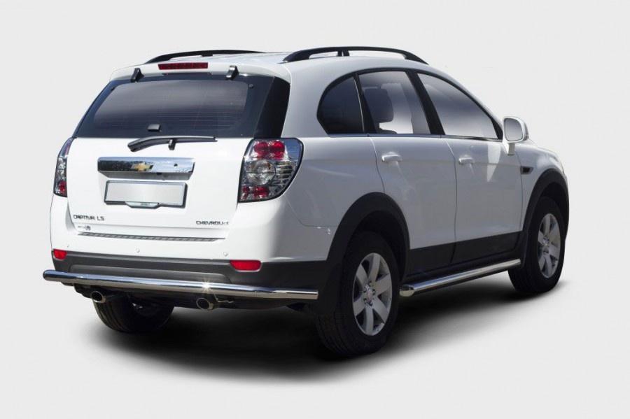 Защита заднего бампера для автомобиля CHEVROLET Captiva 2012. CVC.12.11 представляет собой элемент тюнинга и защиты автомобиля и производится специально для данной модели. Данное изделие изготавливается из нержавеющей стали и полируется вручную, что обеспечивает сохранение отличного внешнего вида в течение длительного времени в наших непростых климатических условиях. Срок поставки продукции производства компании ЮКК Россия составляет 1-5 дней. Установить деталь Защита заднего бампера для автомобиля CHEVROLET Captiva 2012. CVC.12.11 можно на нашем сервисе, предварительно записавшись по телефону.