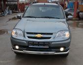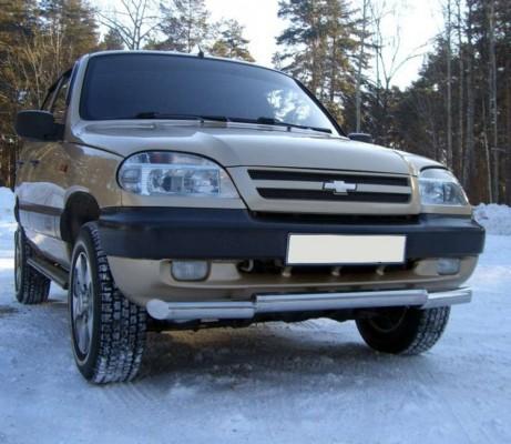 Защита переднего бампера для Chevrolet Niva изготовлена из высококачественной нержавеющей стали марки AISI 304, труба имеет диаметр 76 мм.