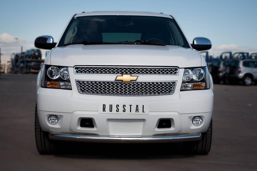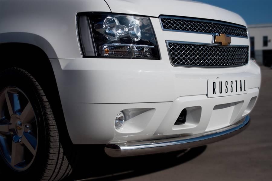 Защита переднего бампера для Chevrolet Tahoe 2012 изготовлена из высококачественной нержавеющей стали марки AISI 304, труба имеет диаметр 76 мм.