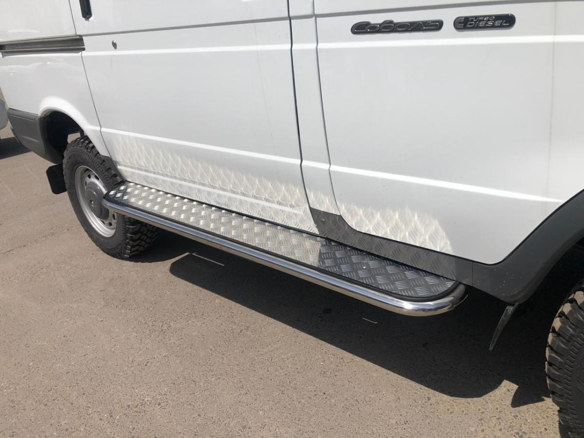 пороги d 42 арт. GAZS.41-2 для автомобиля ГАЗ ГАЗель Соболь - представляет собой элемент тюнинга и защиты автомобиля и производится специально для данной модели. Данное изделие изготавливается из нержавеющей стали и полируется вручную, что обеспечивает сохранение отличного внешнего вида в течение длительного времени в наших непростых климатических условиях. Срок поставки составляет 1-5 дней. Установить деталь пороги d 42 арт. GAZS.41-2 для автомобиля ГАЗ ГАЗель Соболь можно на нашем сервисе, предварительно записавшись по телефону.