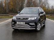 Защита переднего бампера d76+d42 двойная серебристая Geely Atlas (2016-2023) , Slitkoff, арт. GEAT02S