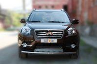 Защита переднего бампера d57+d57 двойная серебристая Geely Emgrand X7 (2011-2016) , Slitkoff, арт. GEX704S