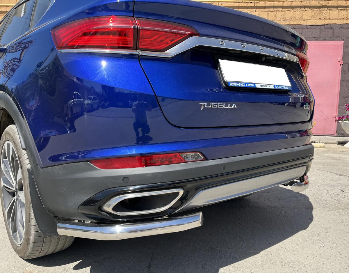 Защита заднего бампера d 60 арт. GT.21.17 для автомобиля GEELY Tugella 2021 - представляет собой элемент тюнинга и защиты автомобиля и производится специально для данной модели. Данное изделие изготавливается из нержавеющей стали и полируется вручную, что обеспечивает сохранение отличного внешнего вида в течение длительного времени в наших непростых климатических условиях. Срок поставки составляет 1-5 дней. Установить деталь Защита заднего бампера d 60 арт. GT.21.17 для автомобиля GEELY Tugella 2021 можно на нашем сервисе, предварительно записавшись по телефону.