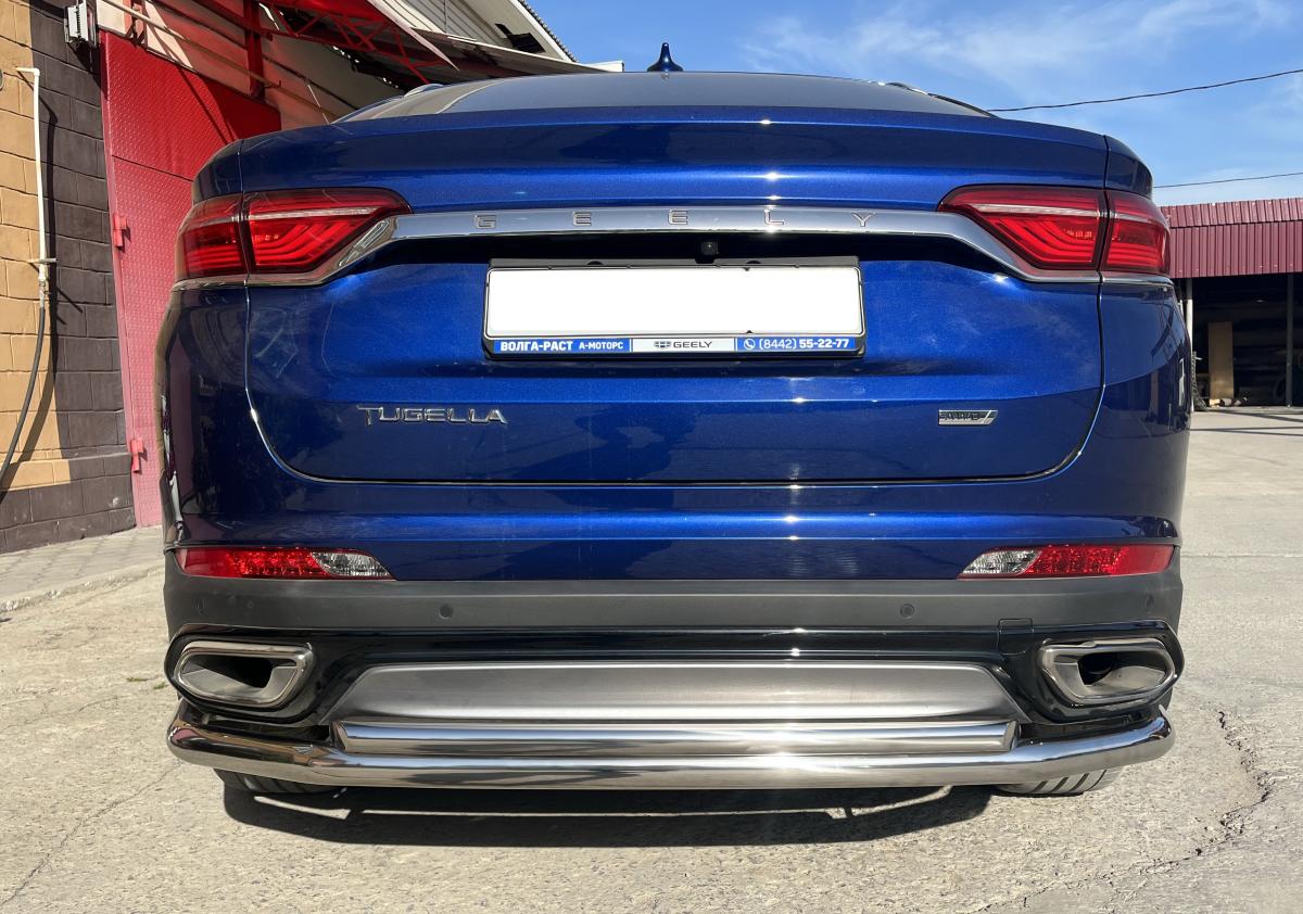 Защита заднего бампера d 60/42 арт. GT.21.22 для автомобиля GEELY Tugella 2021 - представляет собой элемент тюнинга и защиты автомобиля и производится специально для данной модели. Данное изделие изготавливается из нержавеющей стали и полируется вручную, что обеспечивает сохранение отличного внешнего вида в течение длительного времени в наших непростых климатических условиях. Срок поставки составляет 1-5 дней. Установить деталь Защита заднего бампера d 60/42 арт. GT.21.22 для автомобиля GEELY Tugella 2021 можно на нашем сервисе, предварительно записавшись по телефону.
