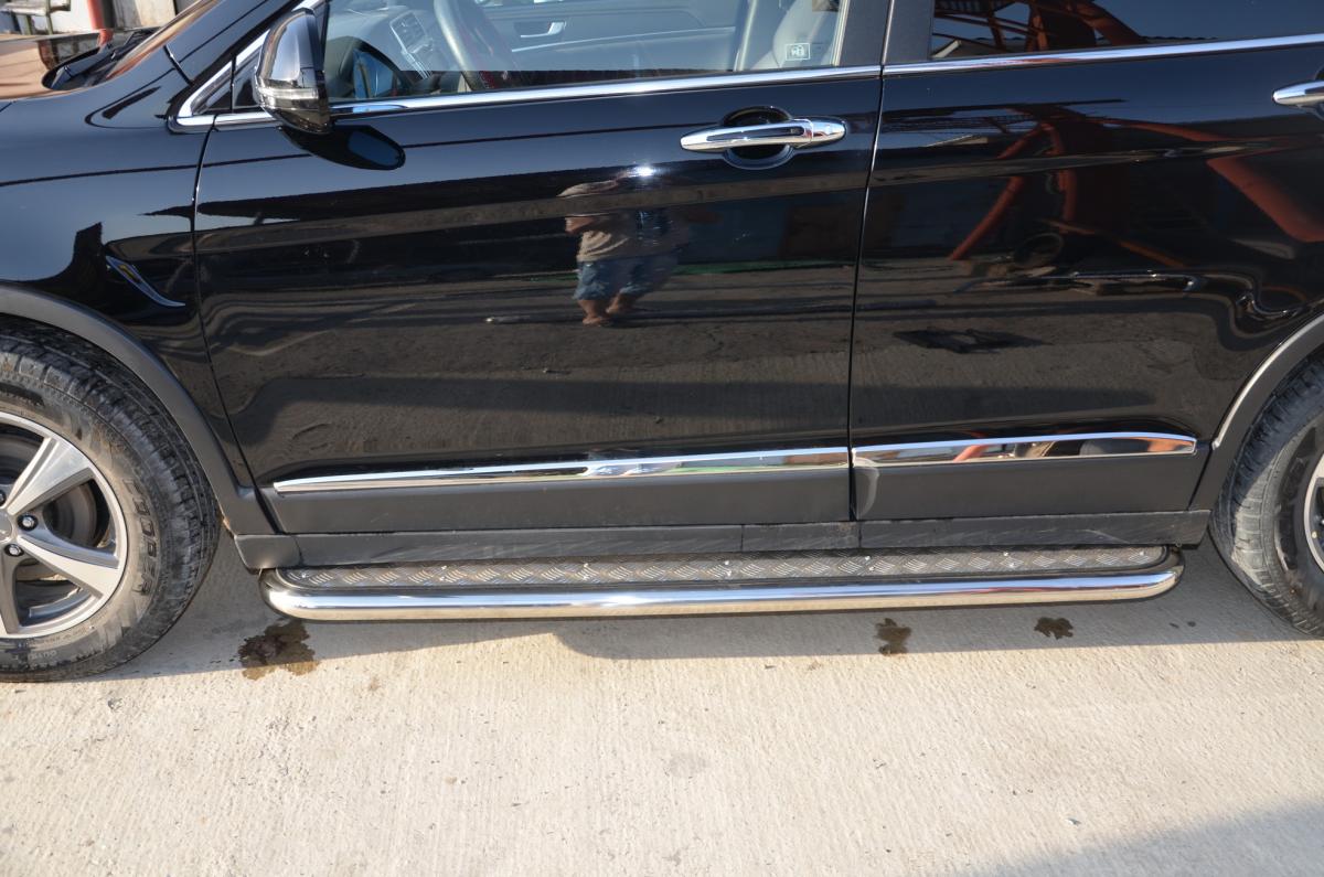 Пороги с накладным листом для автомобиля Haval H6 2017. GWH6.17.41 представляет собой элемент тюнинга и защиты автомобиля и производится специально для данной модели. Данное изделие изготавливается из нержавеющей стали и полируется вручную, что обеспечивает сохранение отличного внешнего вида в течение длительного времени в наших непростых климатических условиях. Срок поставки продукции производства компании ЮКК Россия составляет 1-5 дней. Установить деталь Пороги с накладным листом для автомобиля Haval H6 2017. GWH6.17.41 можно на нашем сервисе, предварительно записавшись по телефону.