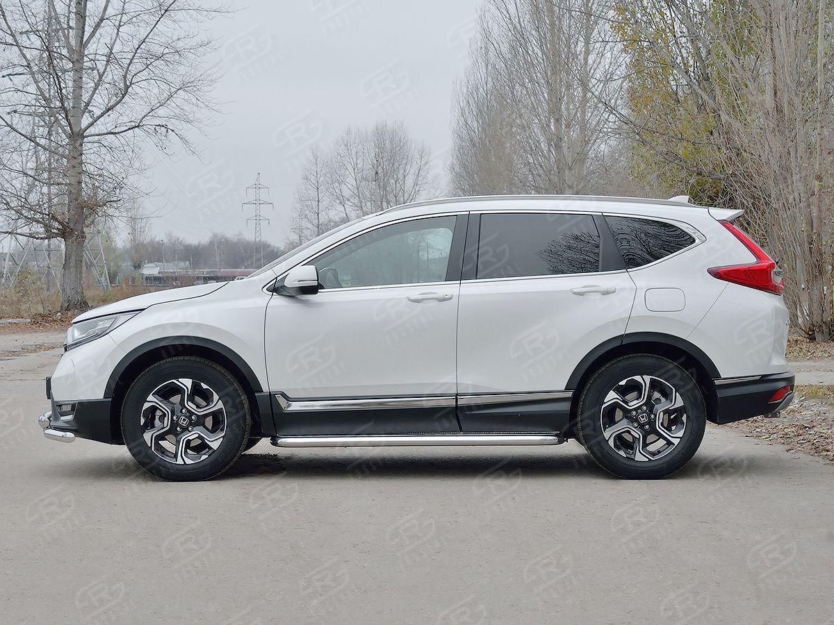 Пороги Русcталь для Honda CR-V 2017 (Хонда СРВ 5 2017) HCRL-0028301 изготовлены из высококачественной нержавеющей стали марки AISI 304, труба имеет диаметр 57 мм.