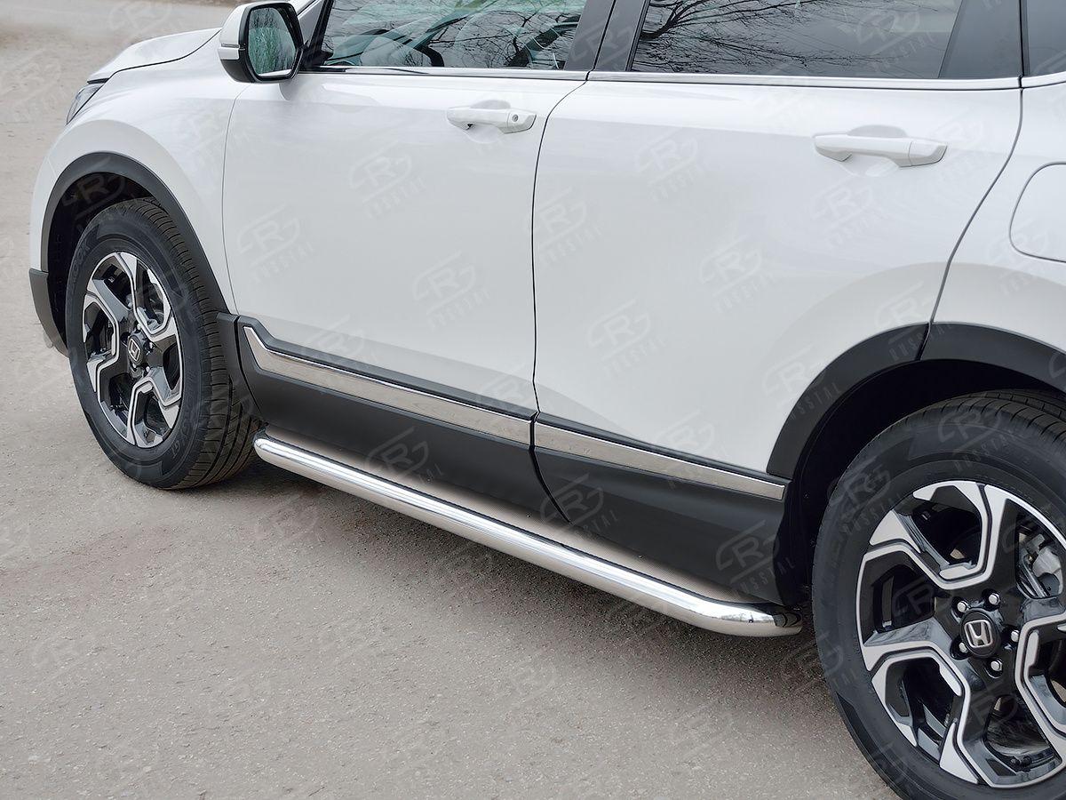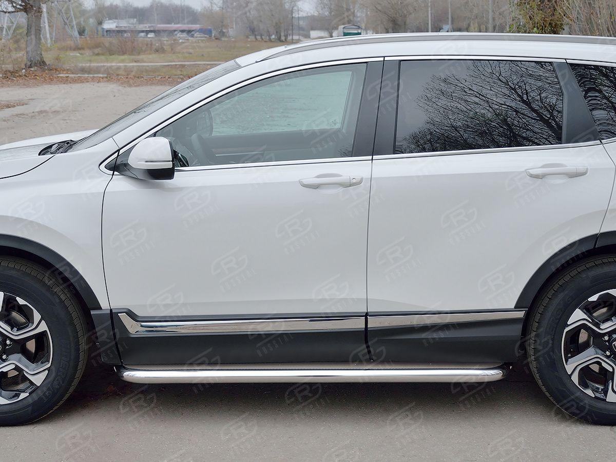 Пороги Русcталь для Honda CR-V 2017 (Хонда СРВ 5 2017) HCRL-0028303 изготовлены из высококачественной нержавеющей стали марки AISI 304, труба имеет диаметр 57 мм.