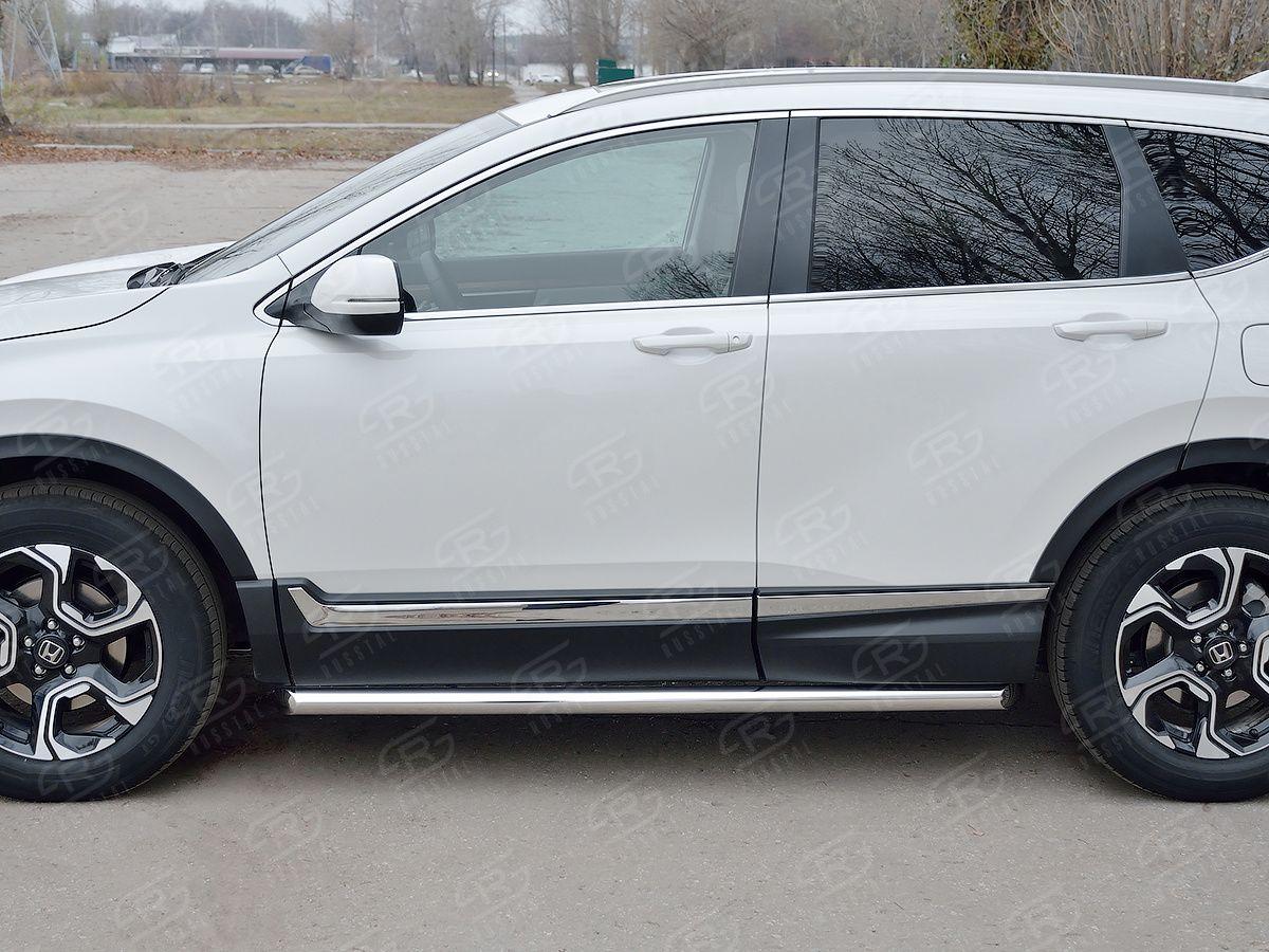 Пороги Русcталь для Honda CR-V 2017 (Хонда СРВ 5 2017) HCRT-0028331 изготовлены из высококачественной нержавеющей стали марки AISI 304, труба имеет диаметр 57 мм.