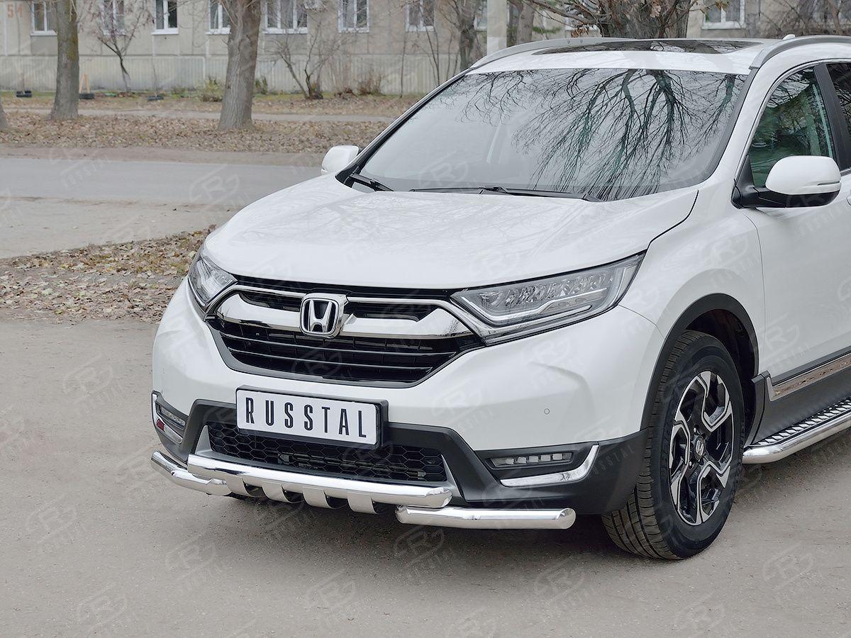 Защита переднего бампера Русcталь для Honda CR-V 2017 (Хонда СРВ 5 2017) HCRZ-002824 изготовлена из высококачественной нержавеющей стали марки AISI 304, труба имеет диаметр 57/57 мм.