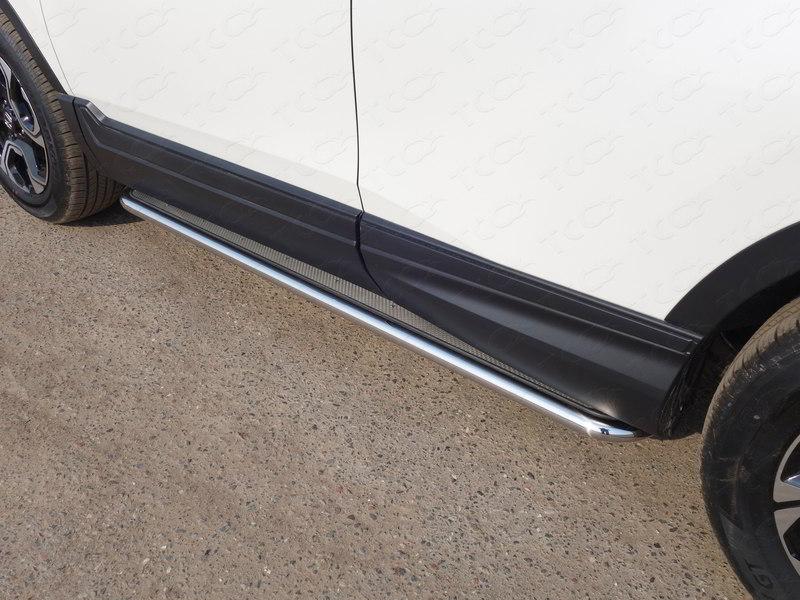 Пороги с площадкой (нерж. лист) 42,4 мм для автомобиля Honda CR-V 2017- представляет собой элемент тюнинга и защиты автомобиля и производится специально для данной модели. Данное изделие изготавливается из нержавеющей стали и полируется вручную, что обеспечивает сохранение отличного внешнего вида в течение длительного времени в наших непростых климатических условиях. Срок поставки продукции производства компании TCC Тюнинг составляет 1-5 дней. Установить Пороги с площадкой (нерж. лист) 42,4 мм для автомобиля Honda CR-V 2017- можно на нашем сервисе, предварительно записавшись по телефону.