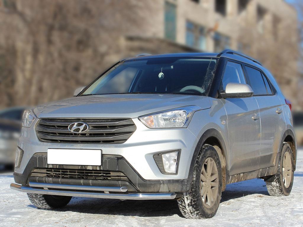 Защита переднего бампера на Hyundai Creta (Хенде Крета) изготовлена компанией Технотек из высококачественной нержавеющей стали, труба имеет диаметр 53/43 мм. В комплекте поставляется набор крепежа и инструкция по установке.