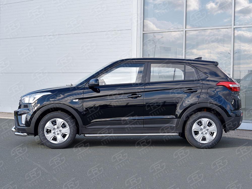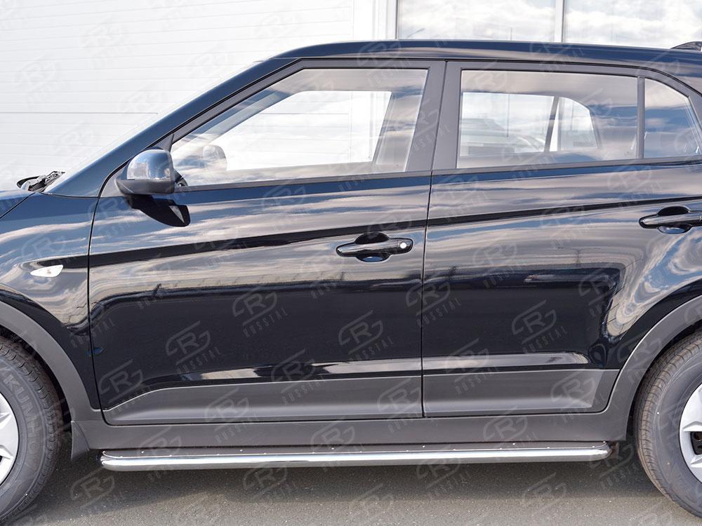 Пороги с листом (вариант 3) Slitkoff для Hyundai Creta 2016- (Хендэ Крета) HCRL-0024253 изготовлены из высококачественной нержавеющей стали марки AISI 304, труба имеет диаметр 42 мм.