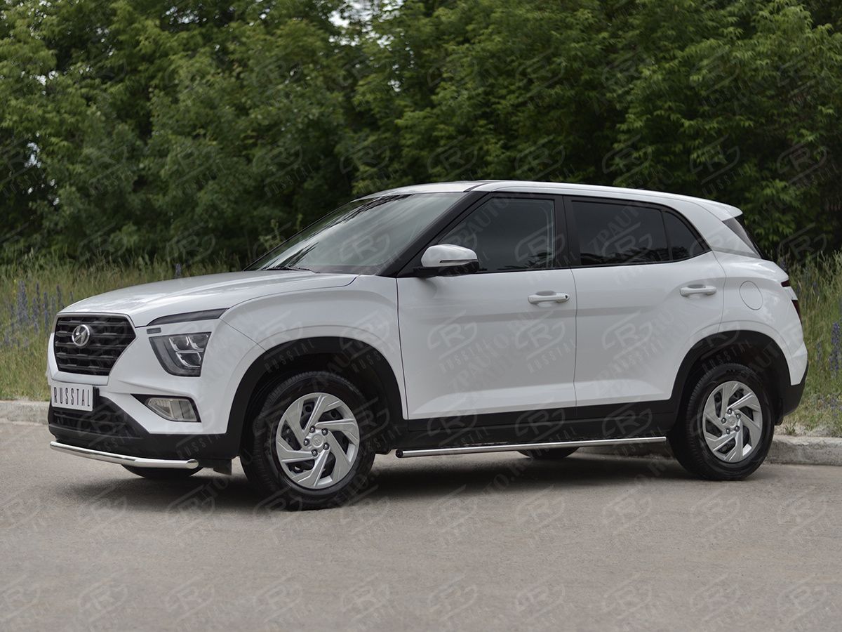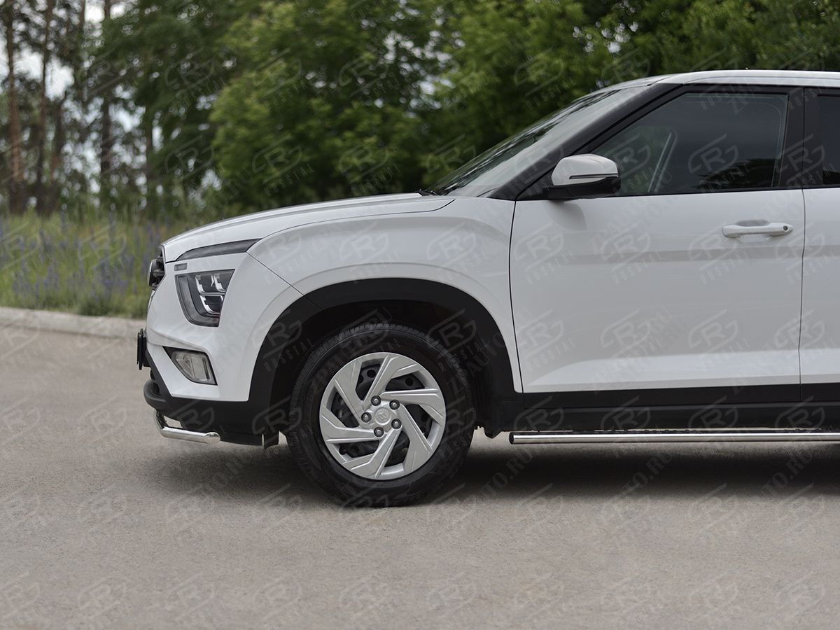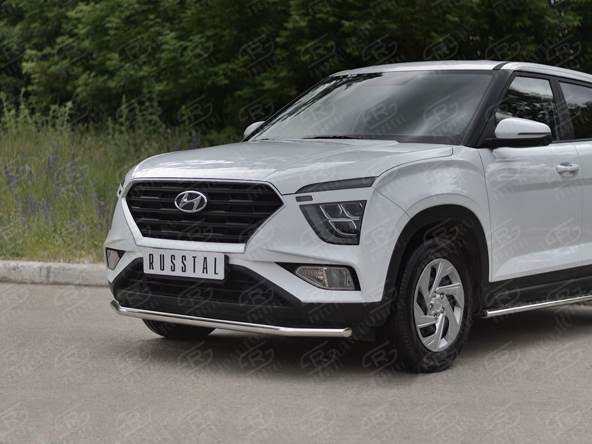Защита переднего бампера d 42 арт. HCRZ-003815 для автомобиля HYUNDAI CRETA 2021- - представляет собой элемент тюнинга и защиты автомобиля и производится специально для данной модели. Данное изделие изготавливается из нержавеющей стали и полируется вручную, что обеспечивает сохранение отличного внешнего вида в течение длительного времени в наших непростых климатических условиях. Срок поставки составляет 1-5 дней. Установить деталь Защита переднего бампера d 42 арт. HCRZ-003815 для автомобиля HYUNDAI CRETA 2021- можно на нашем сервисе, предварительно записавшись по телефону.