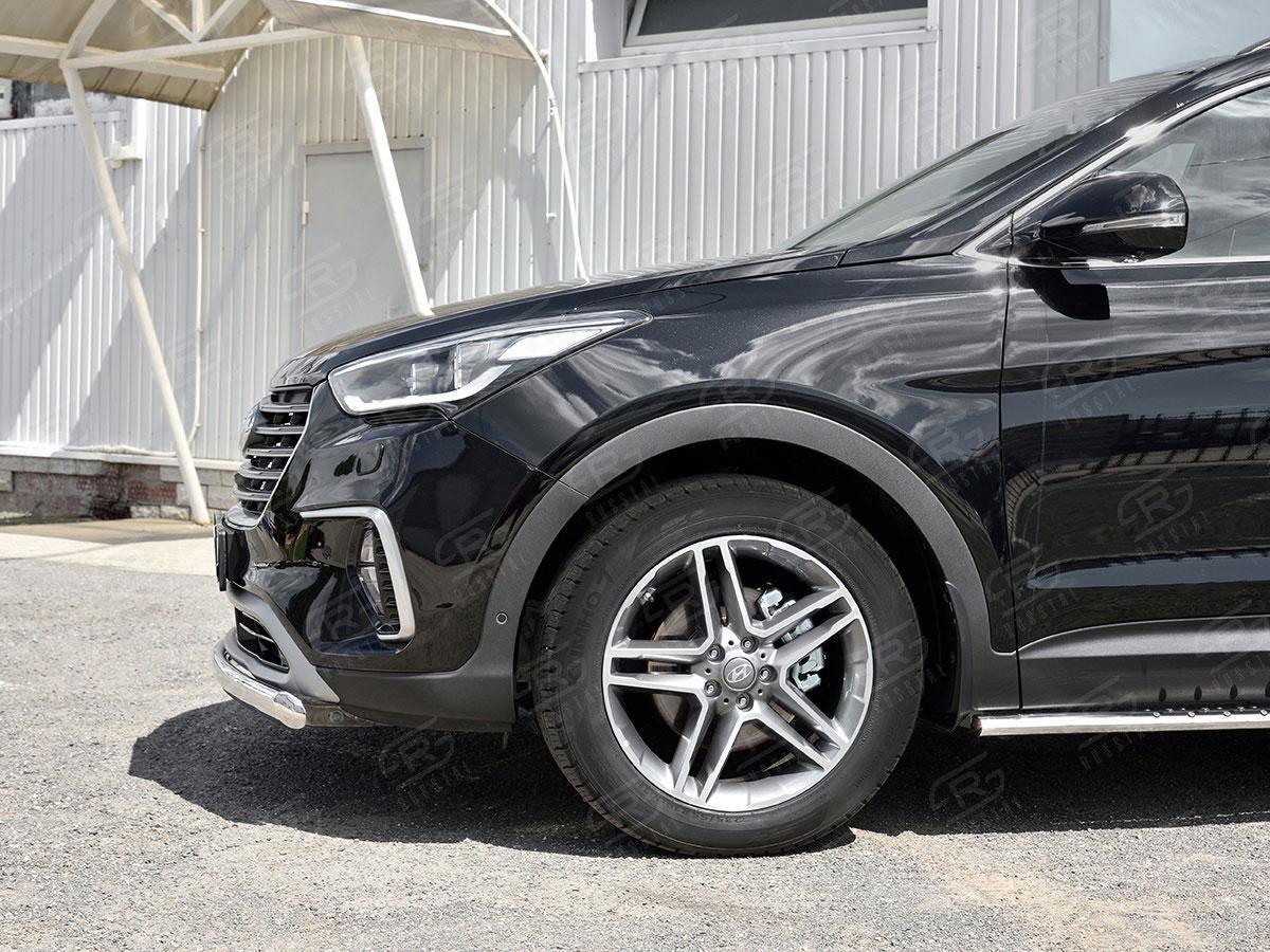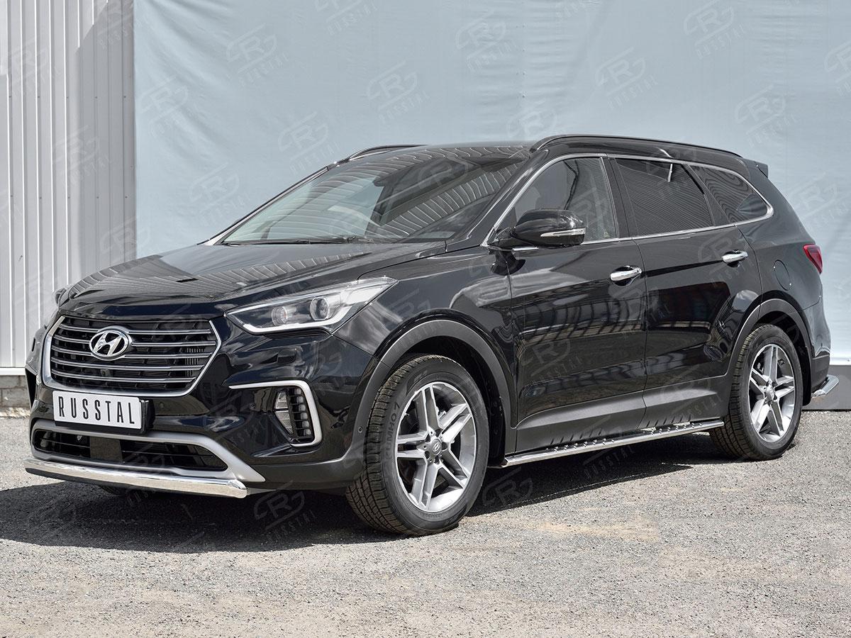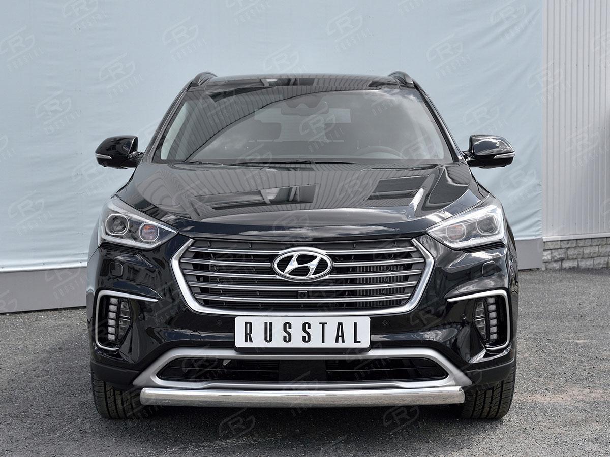 Защита переднего бампера Русcталь для Hyundai Santa Fe Grand 2016 (Хендэ Санта Фе Гранд 2016) HSFZ-002730 изготовлена из высококачественной нержавеющей стали марки AISI 304, труба имеет диаметр 75x42 мм.