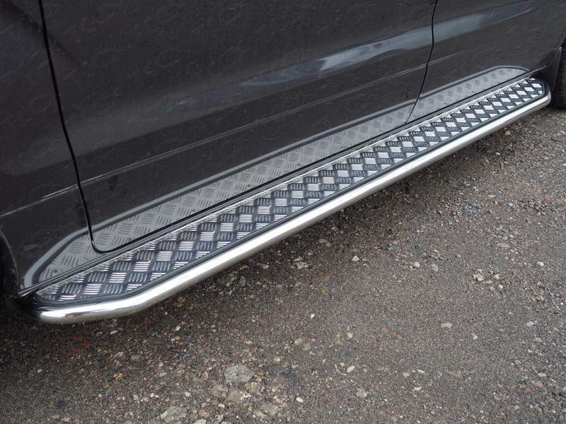 Пороги с площадкой 42,4 мм для автомобиля Hyundai H-1 2018- представляет собой элемент тюнинга и защиты автомобиля и производится специально для данной модели. Данное изделие изготавливается из нержавеющей стали и полируется вручную, что обеспечивает сохранение отличного внешнего вида в течение длительного времени в наших непростых климатических условиях. Срок поставки продукции производства компании TCC Тюнинг составляет 1-5 дней. Установить Пороги с площадкой 42,4 мм для автомобиля Hyundai H-1 2018- можно на нашем сервисе, предварительно записавшись по телефону.