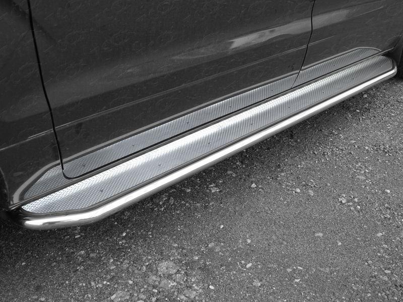 Пороги с площадкой (нерж. лист) 42,4 мм для автомобиля Hyundai H-1 2018- представляет собой элемент тюнинга и защиты автомобиля и производится специально для данной модели. Данное изделие изготавливается из нержавеющей стали и полируется вручную, что обеспечивает сохранение отличного внешнего вида в течение длительного времени в наших непростых климатических условиях. Срок поставки продукции производства компании TCC Тюнинг составляет 1-5 дней. Установить Пороги с площадкой (нерж. лист) 42,4 мм для автомобиля Hyundai H-1 2018- можно на нашем сервисе, предварительно записавшись по телефону.