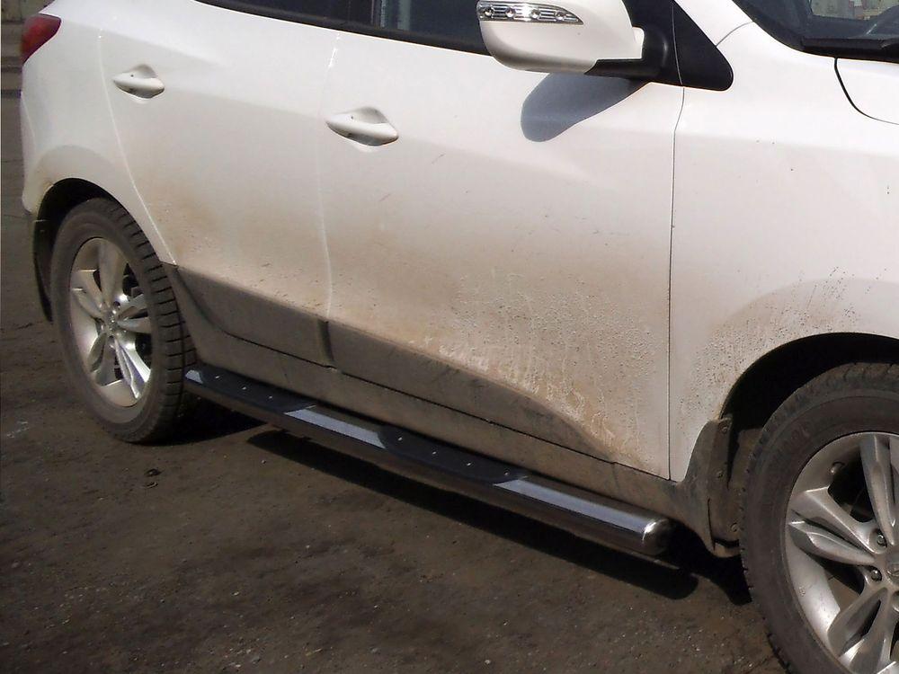 Пороги степ (с проступью) d76 для Hyundai ix35, Технотек HIX35_4 изготовлены из высококачественной нержавеющей стали, труба имеет диаметр 76 мм. В комплекте поставляется набор крепежа и инструкция по установке.