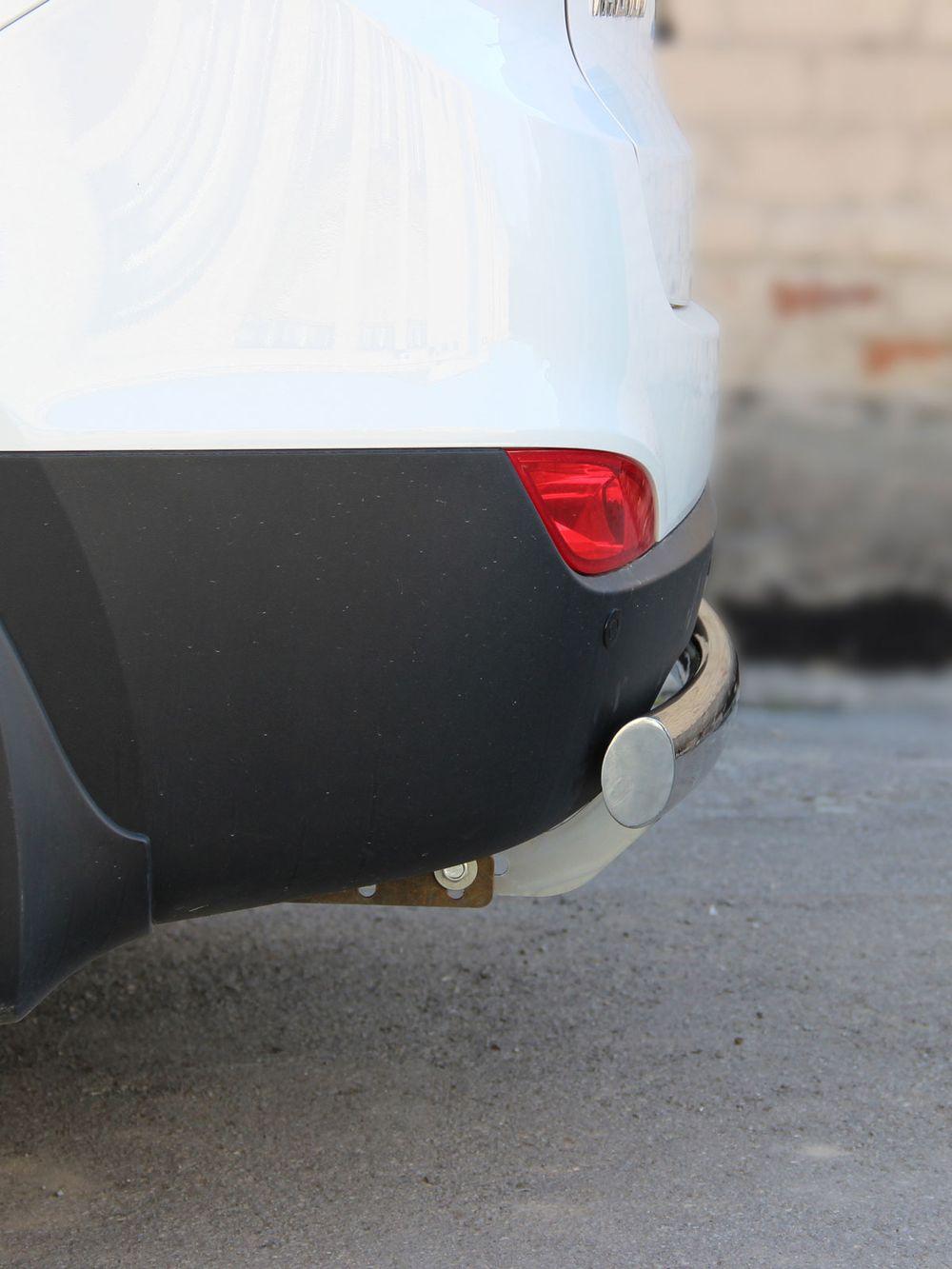 Защита заднего бампера радиусная двойная d60+60 для Hyundai ix35, Технотек HIX35_6 изготовлена из высококачественной нержавеющей стали, труба имеет диаметр 60/60 мм. В комплекте поставляется набор крепежа и инструкция по установке.